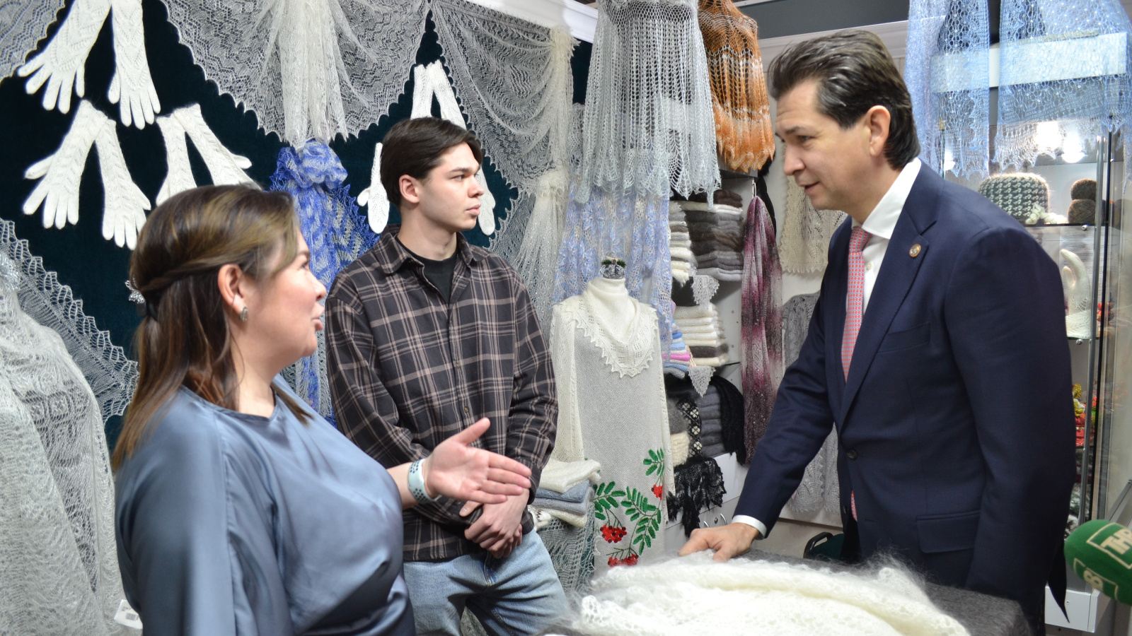 Уполномоченный при Раисе Республики Татарстан по защите прав предпринимателей Фарид Абдулганиев сегодня посетил казанский Агропромпарк, где встретился с ремесленницей Альбиной Мухамедьяровой, создающей уникальные пуховые платки. Цель визита — на живом примере оценить, как работает новый республиканский закон, закрепляющий правовой статус ремесленников.