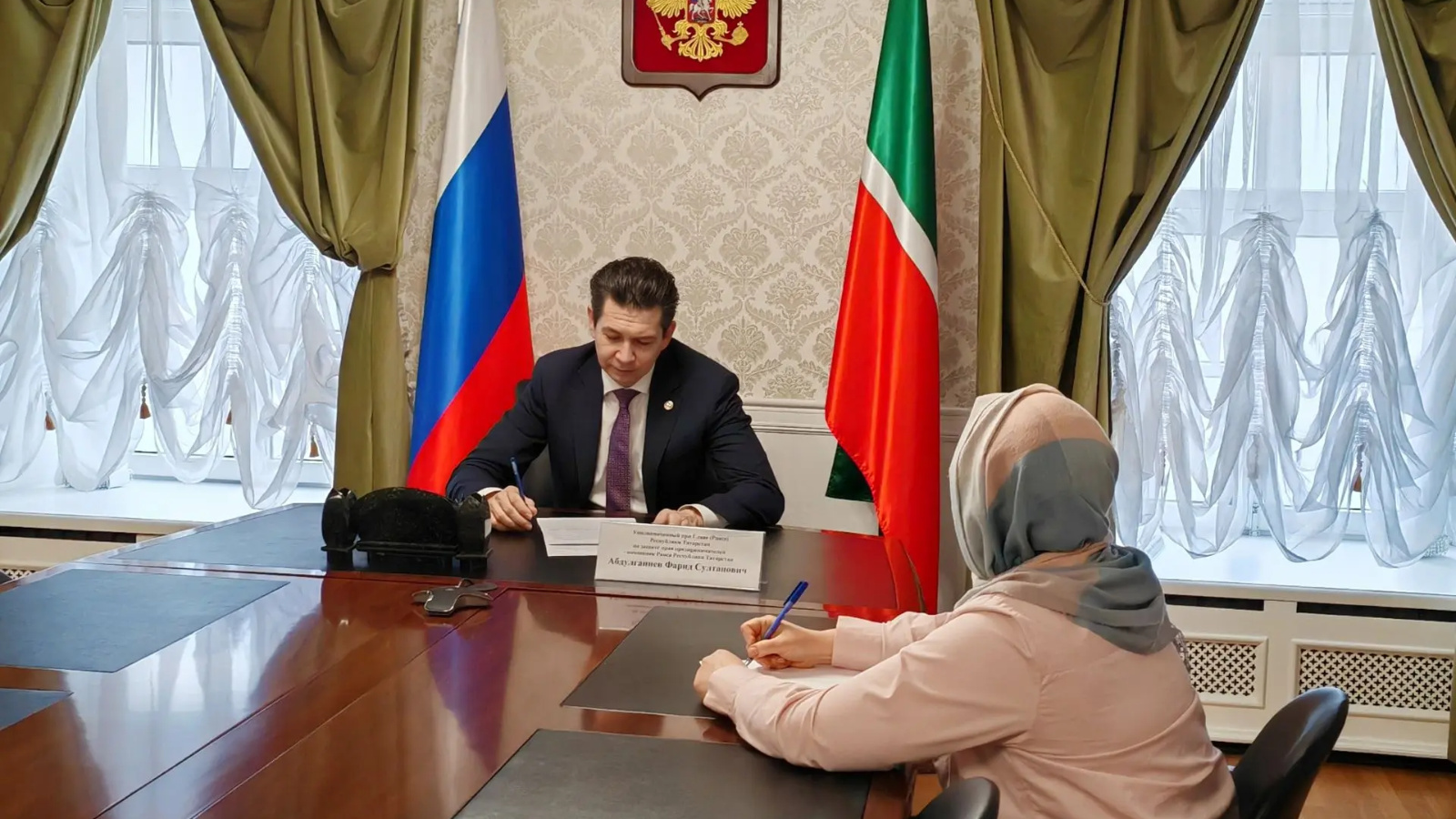 Сегодня Уполномоченный при Главе (Раисе) РТ по защите прав предпринимателей — помощник Раиса РТ Фарид Абдулганиев провел очередной личный прием граждан в приемной Президента РФ в Республике Татарстан. В ходе встречи предприниматели обратились с вопросами, касающимися плановых проверок, организации общественного питания, налогообложения при смене режимов и лицензирования образовательной деятельности.
